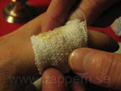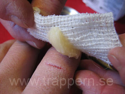kallt, så blodet fick nog hjälp att koagulera. Salvan fanns tyvärr inte i
