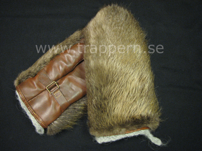 Ett av det förnämsta du kan tänka dig att investera i för dina händer. Här finns precis som med allt mitt övriga hantverk, stora valmöjligheter. Utgångsläget är att det är din produkt som jag ska skapa. Som blir högst personlig med anpassade mått efter just dig. Den här modellen är gjord av ett kraftigt och relativt tjockt avhårat renskinn på insidan. Handskarnas översida består av två noggrant utvalda delar av en fullvuxen Bävers skinn. I det avbildade paret, så finns mitt livs största Bäverhane. Ett djur räcker alltså. Då blir det förvisso skinn över, men allting nyttjas och fyller sin funktion för min del. Nu har jag lagt mönstret längs själva buksnittet på Bävern. Det gör att varje handske får de kortare och finare bukskinnet på tum och pekfingersidan. Kroppen över mage och bringa har som bekant längre päls och stickelhår. Detta hamnar då på utsidan handen och är således inte i vägen eller hamnar i handflatan vid olika göromål. Pälsens riktning är också att ta i beaktande. Jag har kalkylerat på att händerna procentuellt mest (för min del), bärs i vertikalt nedåt mot marken. Därför har jag valt att sy dom med Bäverns huvud uppåt. Det gör att varken snö eller skräp fastnar i pälsen. Önskemål från somliga skoter piloter är att få handskarna helt omvända, för att vindriktningen ska bli den rätta och inte påverka pälsen från fel håll. Eftersom händerna till största delen hålls på skoterns styre. För övrigt så lever en Bäver inte heller baklänges, så detta fäller sig ganska naturligt.