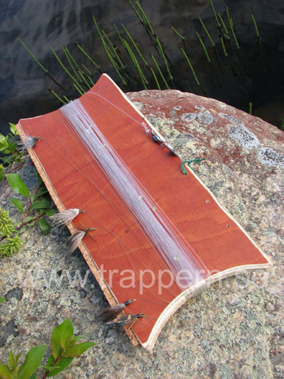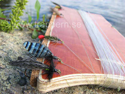 handgjort fiskeredskap. Här är flugorna uppbundna och beprövade för