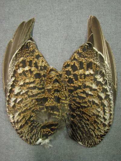 Hazel Grouse – Tail feathers They look virtually the same on both cock and hen. Wet-flies, nymphs and pupae can be made from these.