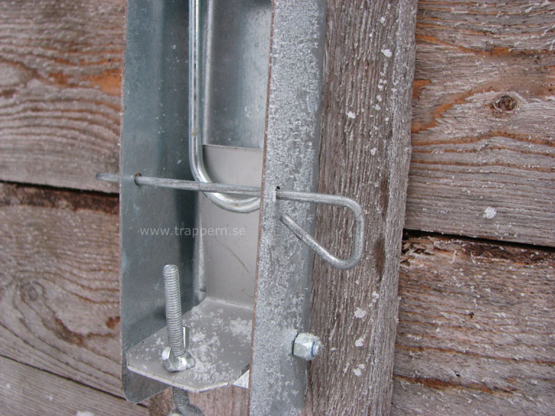 skruvar fäster huvudenheten i fällans vägg, överliggaren kompletteras med